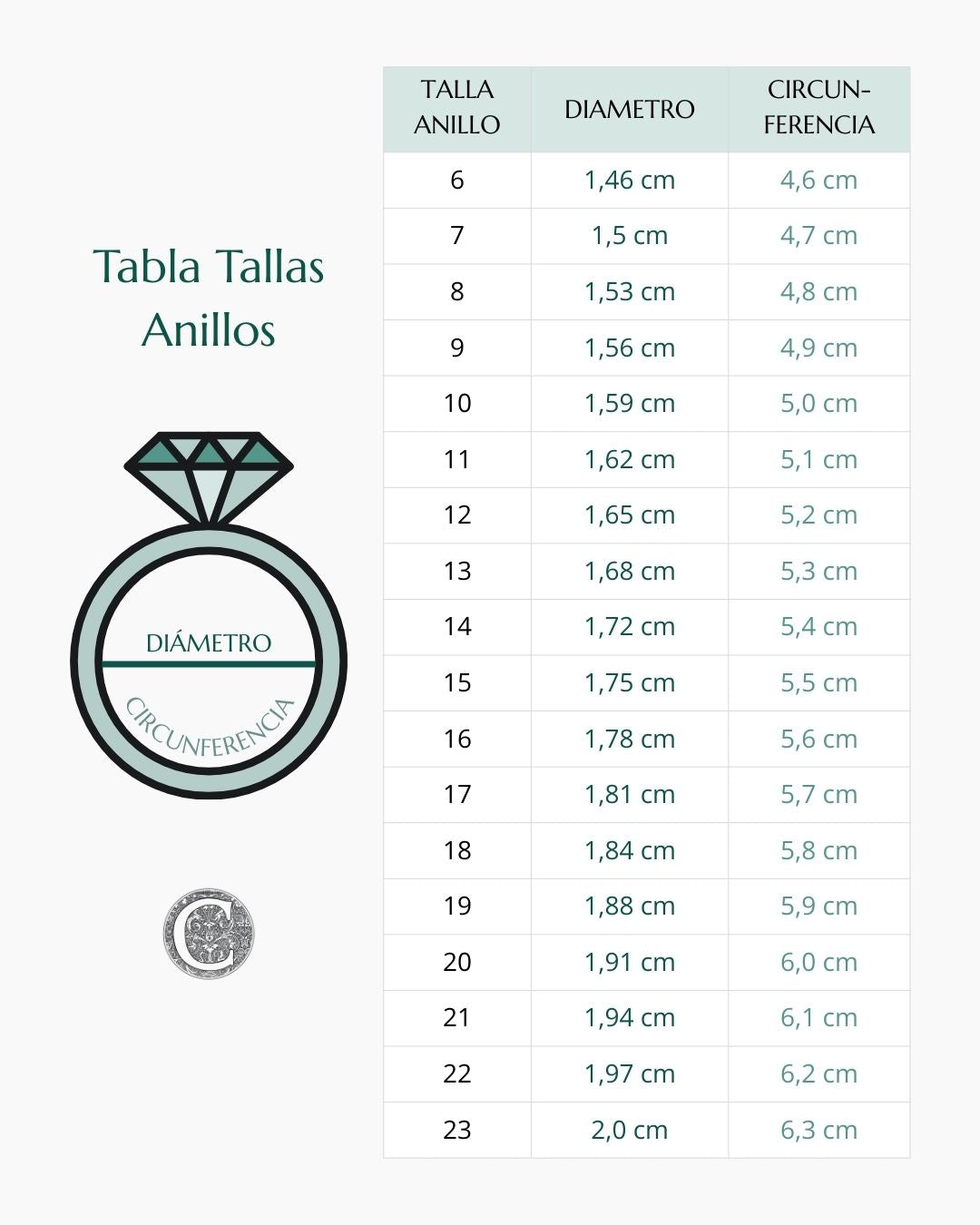 Ahora que ya sabemos la medida del dedo en centímetros (cm) te vas a la tabla de equivalencia para conocer tu talla de anillo.